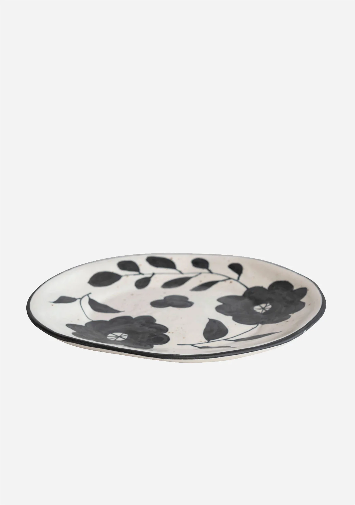 Hand-Painted Stoneware Plate w/ Floral Design, Matte Black & Cream Color Speckled