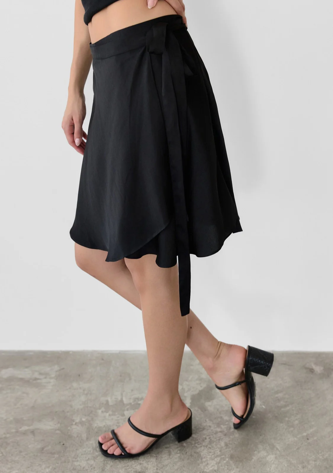 Hey there, fashion lover! Get ready to turn heads with The Camila Skirt, a chic black wrap skirt that seamlessly blends style and versatility.