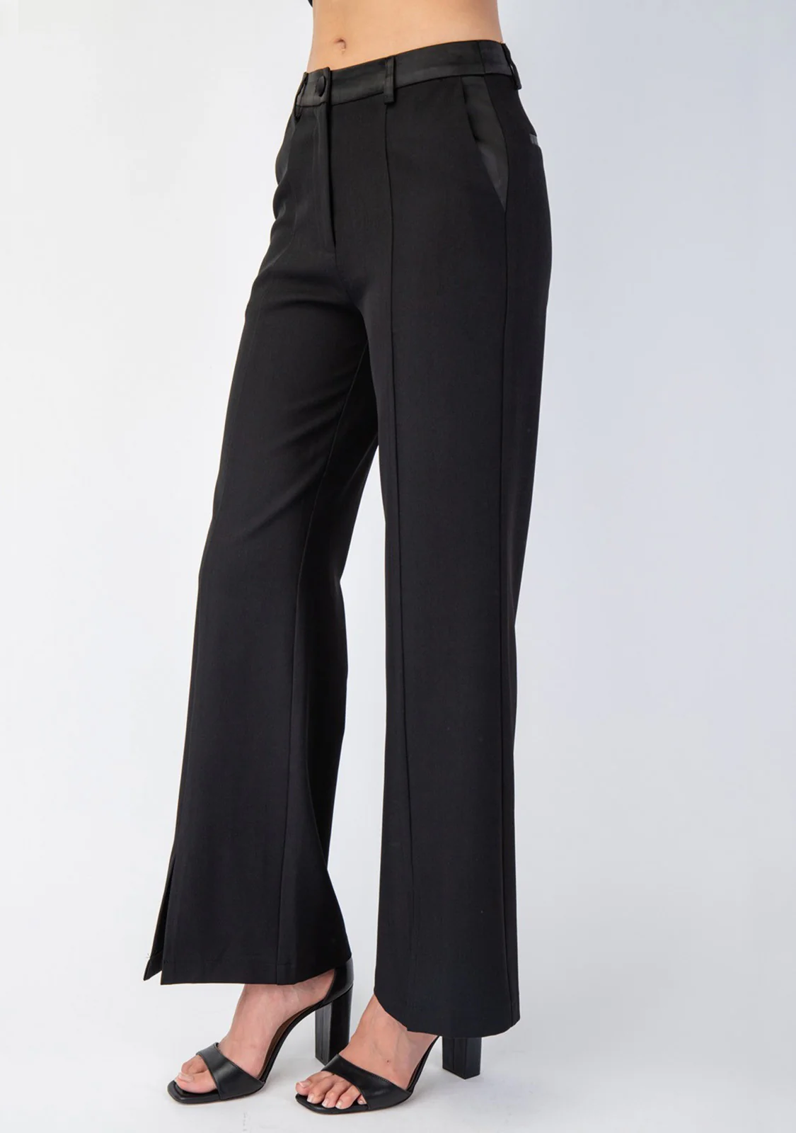 Step out in confidence and sophistication with these tailored wide leg pants. The sleek high waist and wide leg cut create an elongating effect that'll make you feel like a total boss. Plus, that luxe satin contrast insert? Absolutely stunning! Pair with a silky blouse and strappy heels for a night out on the town, or dress 'em down with a simple tee for an effortlessly chic vibe.
